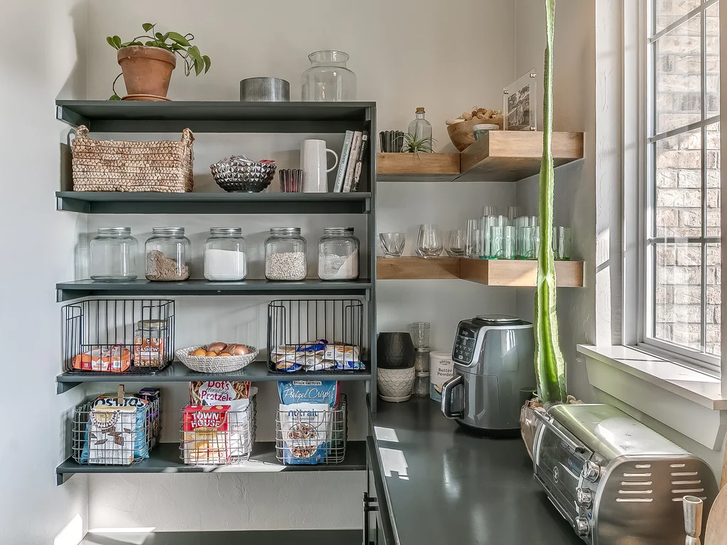 The butler’s pantry offers incredible organization potential, with abundant shelving, natural light, and generous counter space perfect for everyday appliances like your KitchenAid mixer or air fryer.