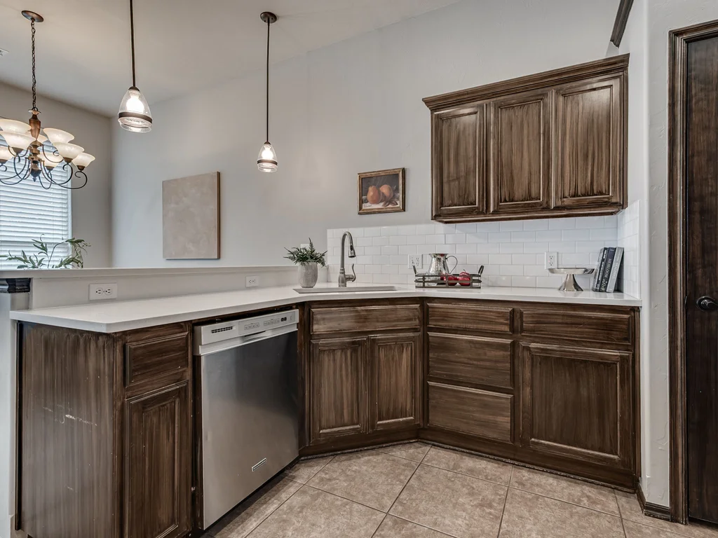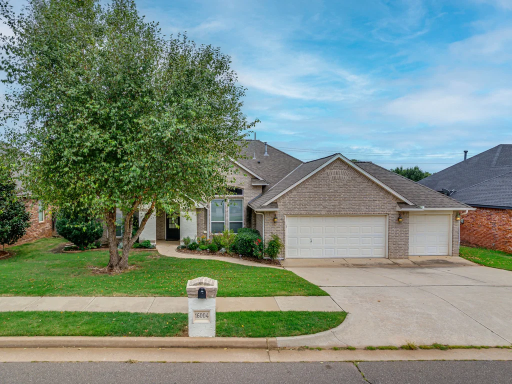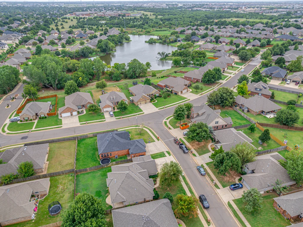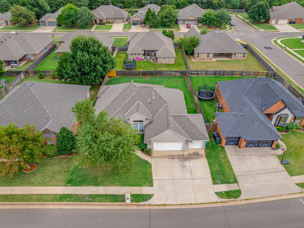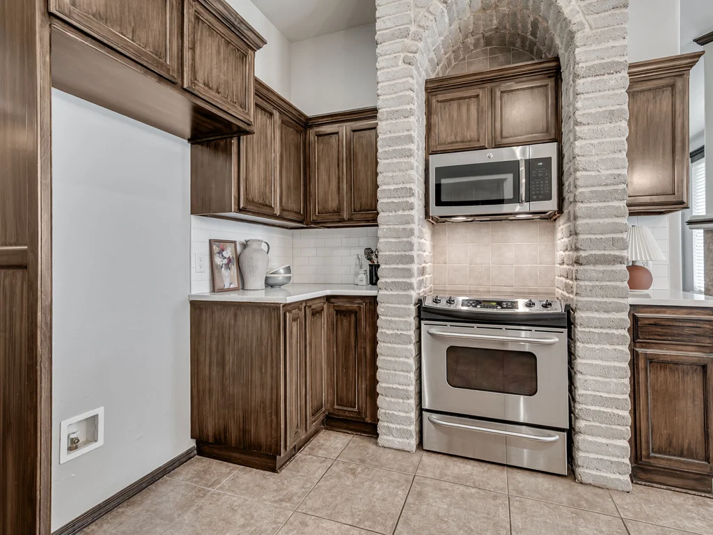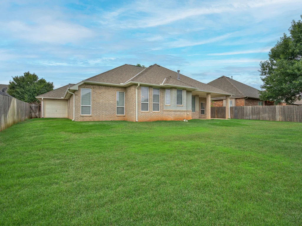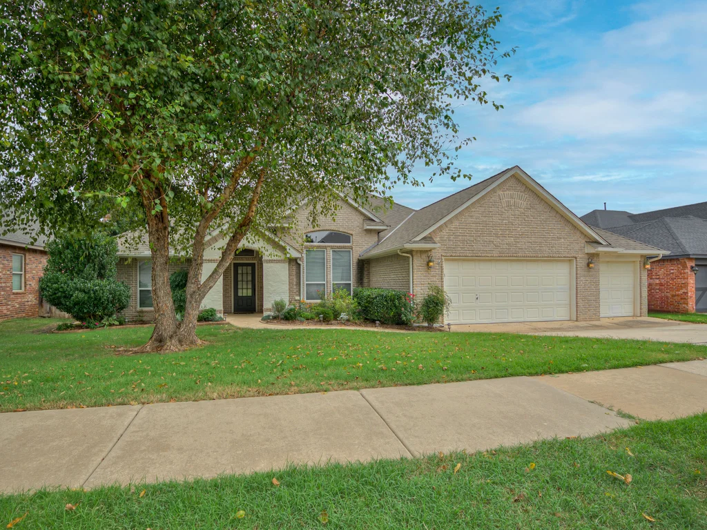 This 3-bedroom, 2.5-bath home in Edmond Schools offers a perfect balance of charm and convenience. The welcoming entryway features a cool arched barn door nook with shelves—ideal for storage or decor—and leads to a large study with soaring ceilings, perfect for work, play, or quiet retreat. The kitchen is a true centerpiece with quartz countertops, a gas stove, and a brick-arched area over the cooktop that adds timeless style.