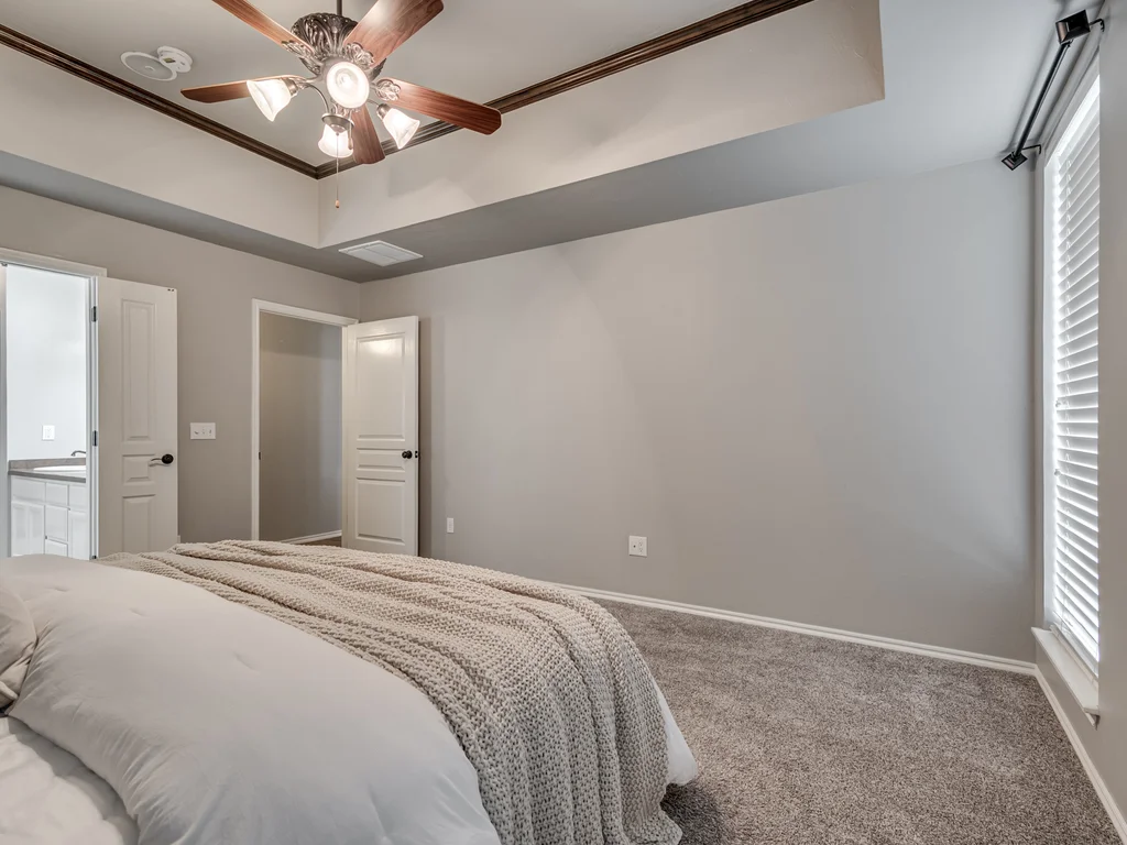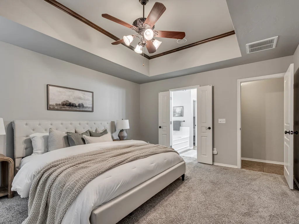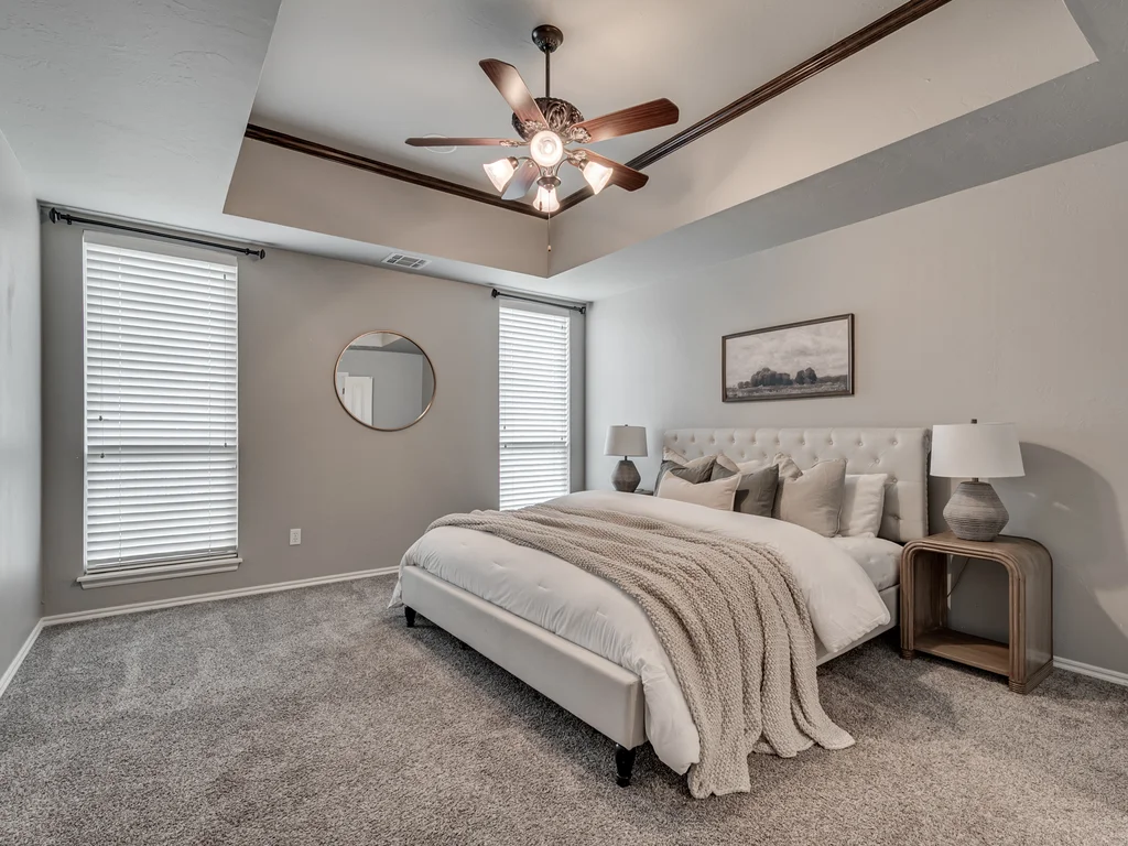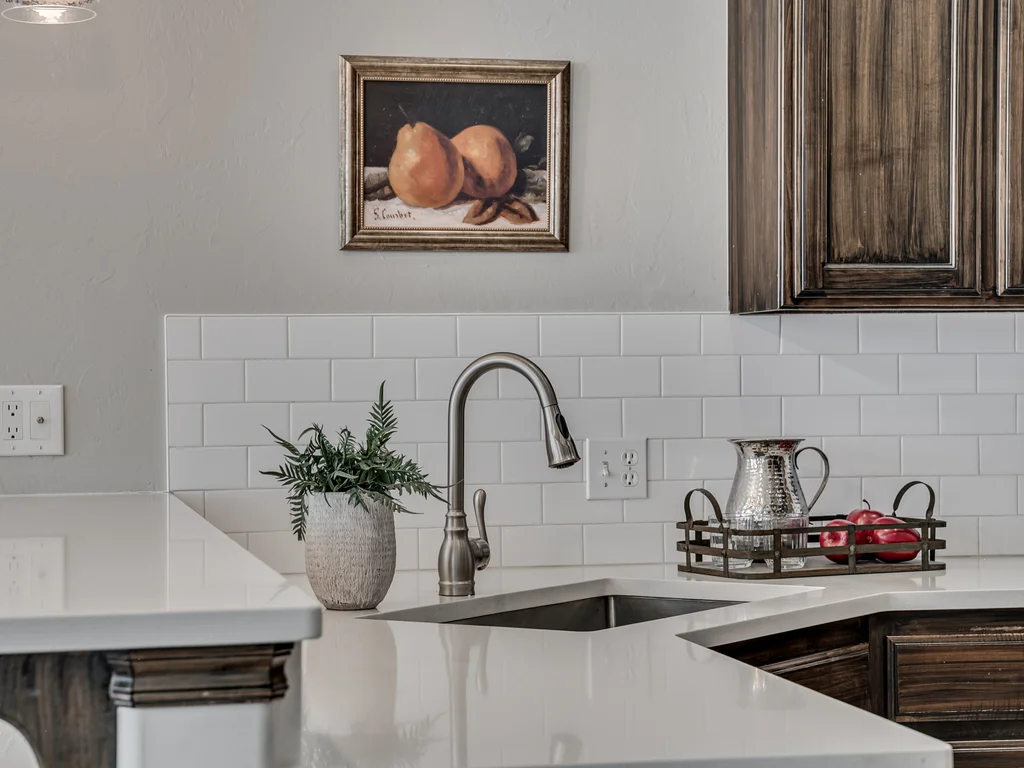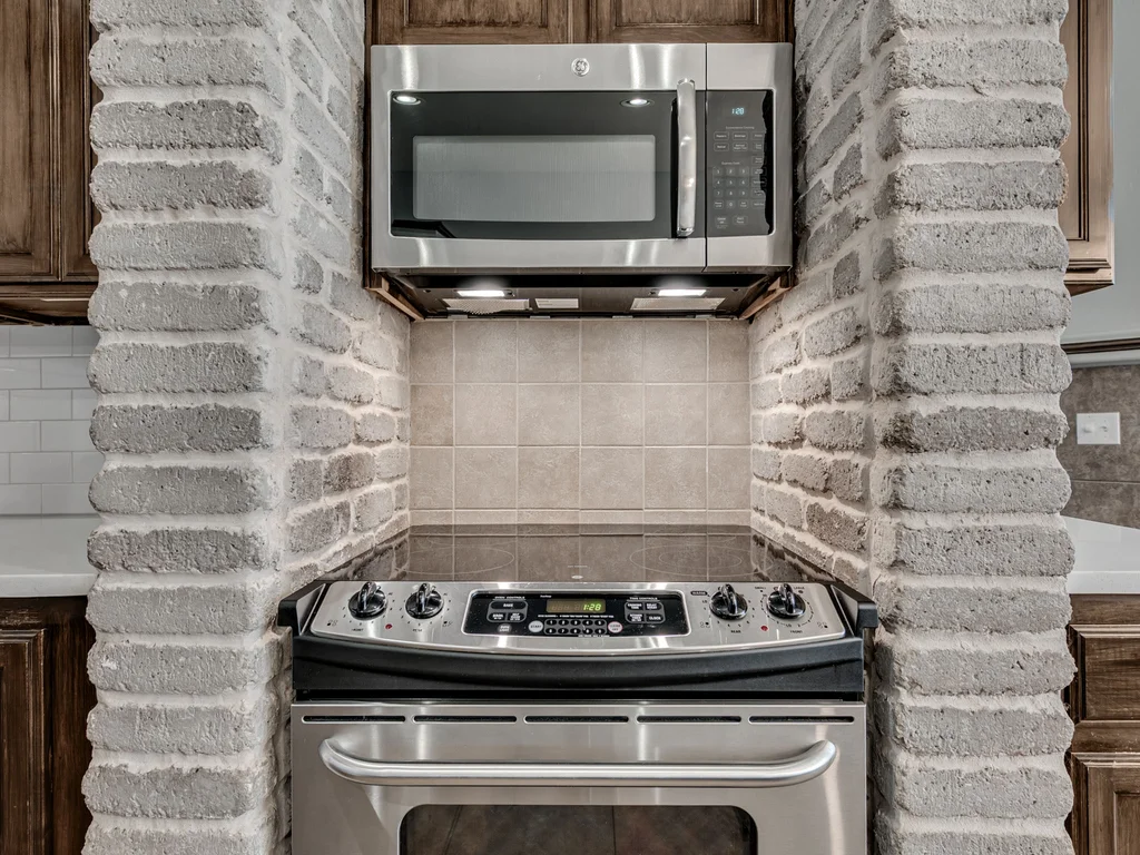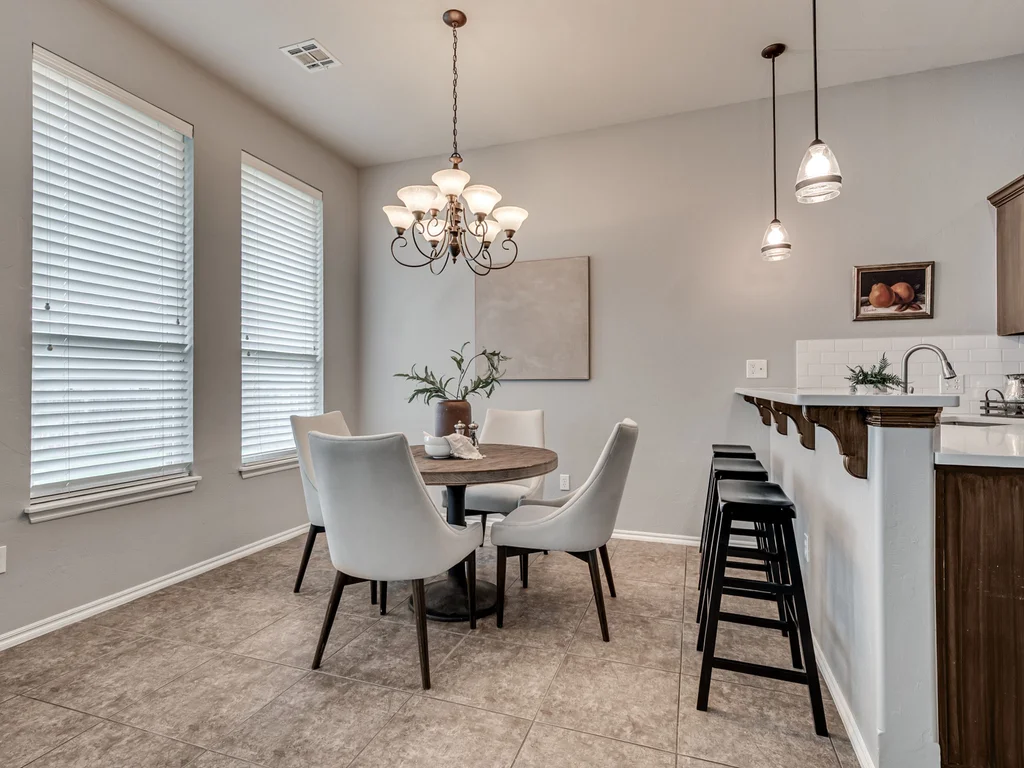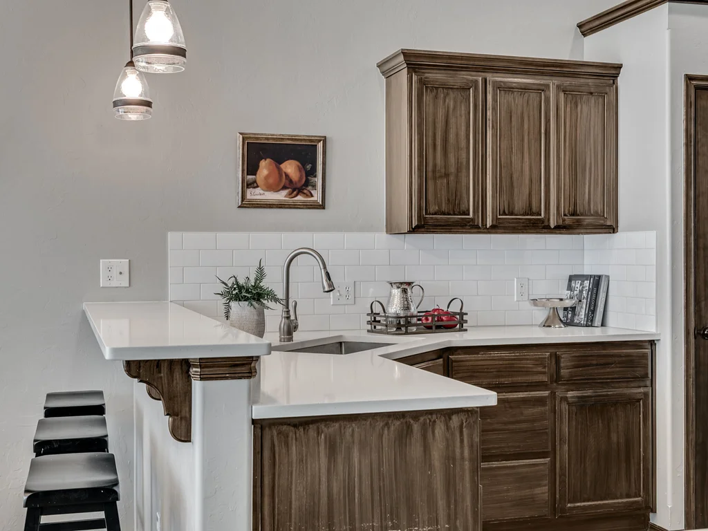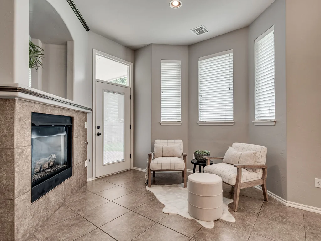 This 3-bedroom, 2.5-bath home in Edmond Schools offers a perfect balance of charm and convenience. The welcoming entryway features a cool arched barn door nook with shelves—ideal for storage or decor—and leads to a large study with soaring ceilings, perfect for work, play, or quiet retreat. The kitchen is a true centerpiece with quartz countertops, a gas stove, and a brick-arched area over the cooktop that adds timeless style.