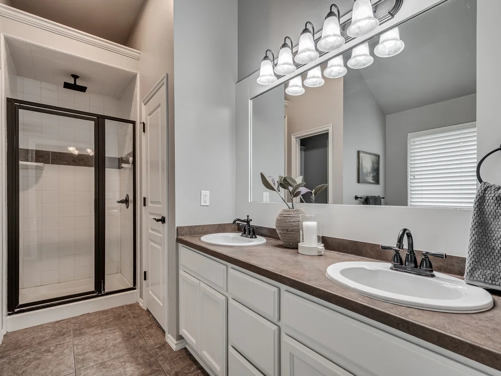 Additional highlights include a 3-car garage, storm shelter, and the home’s white stucco and grey brick exterior, giving a subtle nod to Mediterranean design. A large backyard offers space to relax or play, while the neighborhood provides fantastic amenities like a pool, clubhouse, and playground.