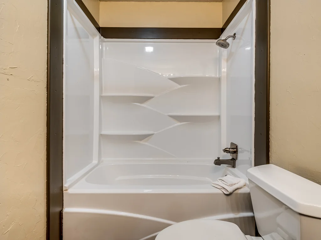 Downstairs, you’ll find three bedrooms including a true primary suite designed as a retreat. The ensuite bathroom features a deep jetted tub for two, a spa-style shower with rainhead, body jets, and handheld sprayer, dual sinks, and a large walk-in closet—offering both comfort and practicality.