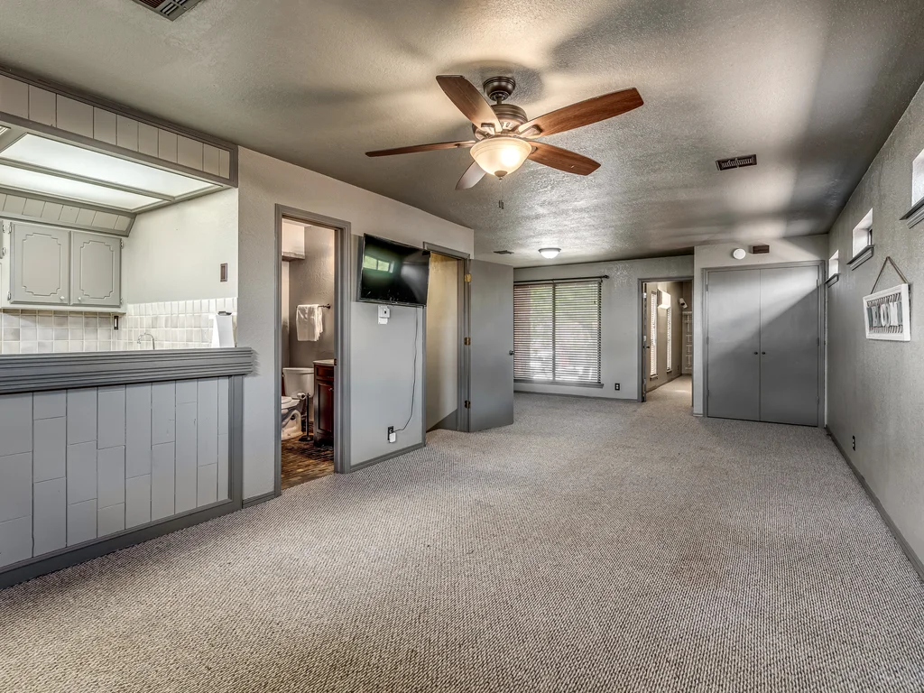 Upstairs, the layout opens even further—featuring an additional living area, bedroom, full bathroom, and a kitchenette setup with sink and space for a mini fridge. Whether used for guests, multi-generational living, or simply extra breathing room, this space creates options that are hard to find.