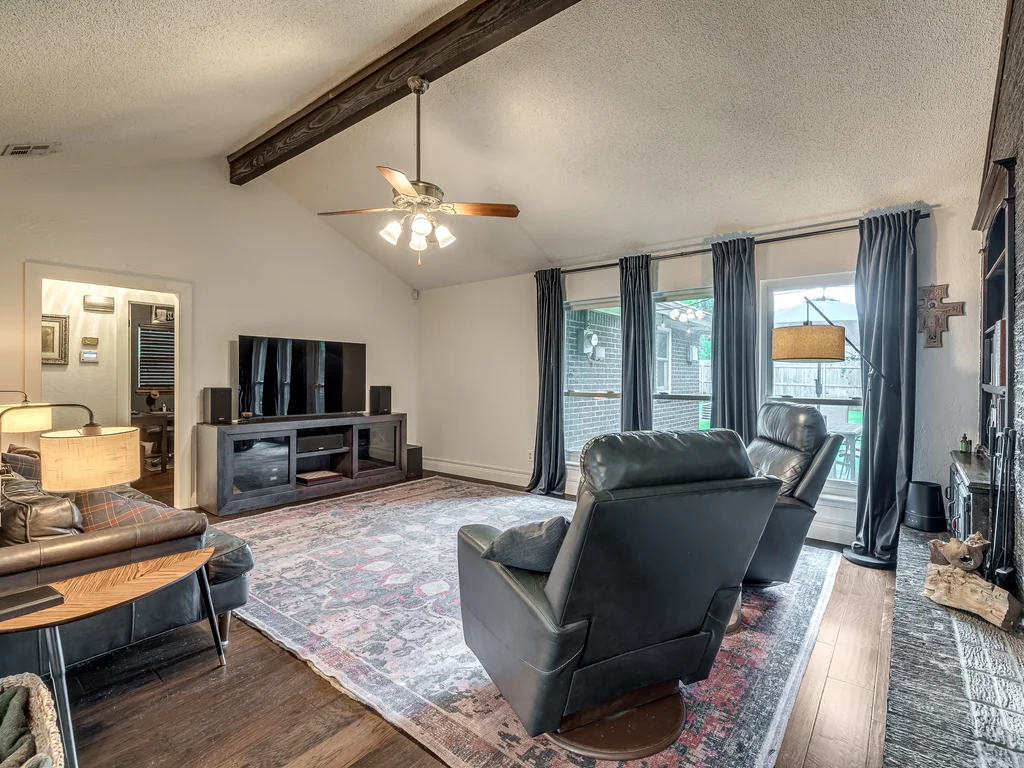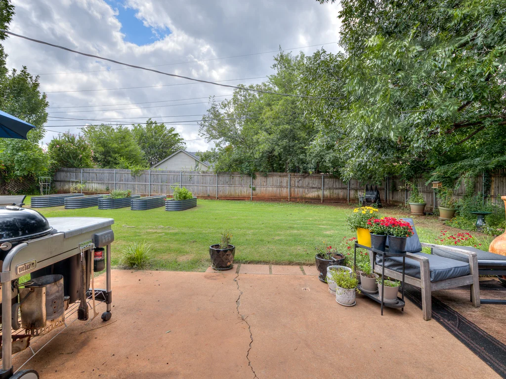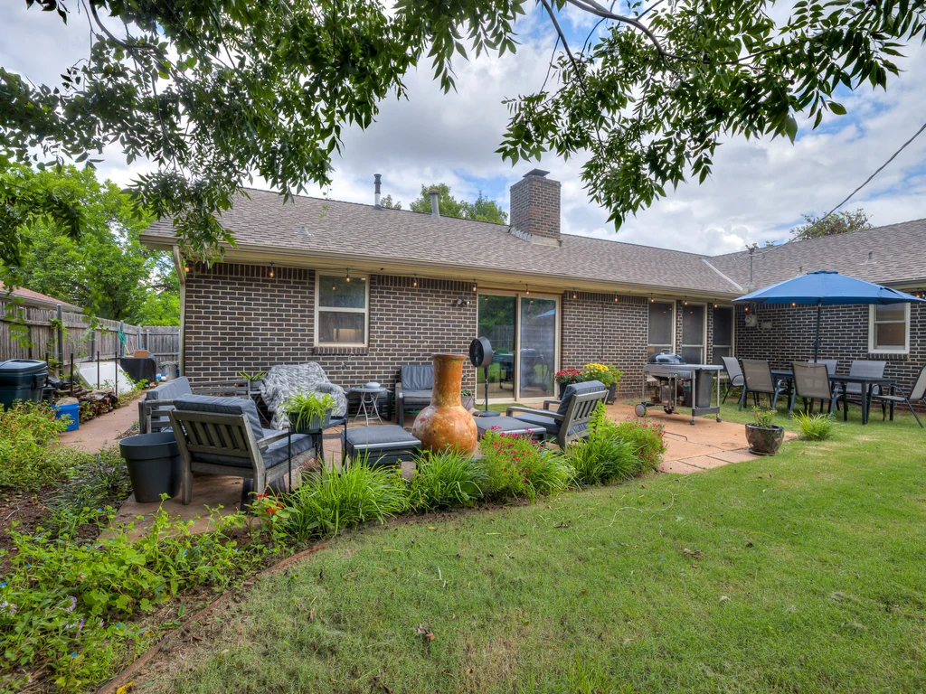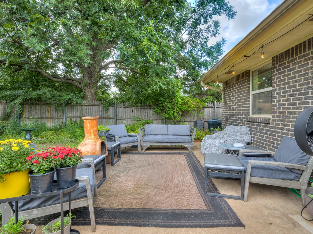 Upgrades include Andersen windows, all-new PEX plumbing overhead, irrigation system, storm shelter in the garage, tankless water heater, and a brand-new dishwasher on the way. Step outside to enjoy the large open patio, surrounded by mature trees that provide both shade and a beautiful backdrop. Modern updates meet retro vibes in a home that’s both stylish and functional—ready for its next chapter.