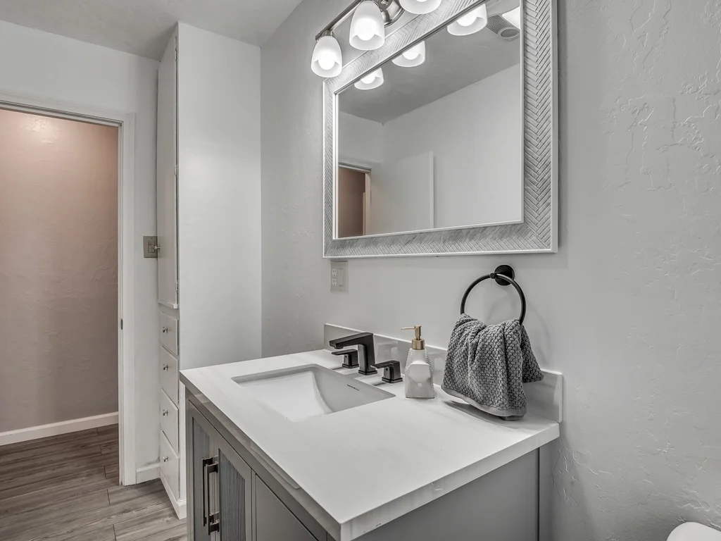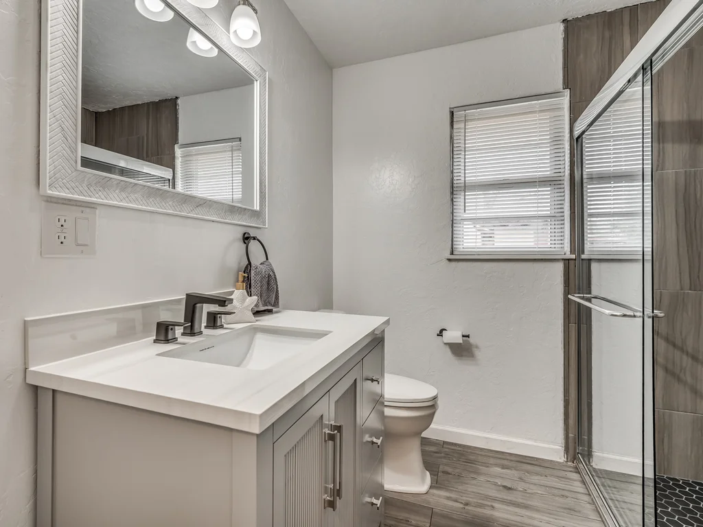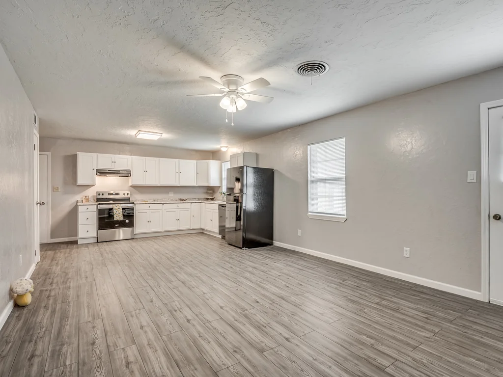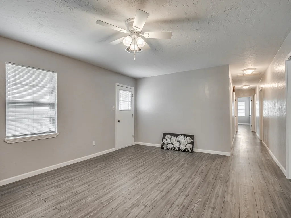 Inside, you’ll find two separate living areas, creating natural separation for relaxing, entertaining, or everyday life. The home features updated finishes and fixtures throughout, along with ceiling fans throughout, adding both comfort and style.