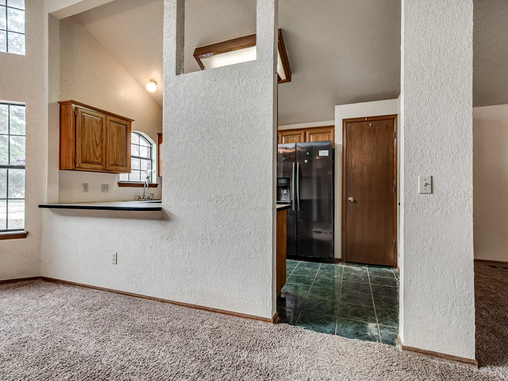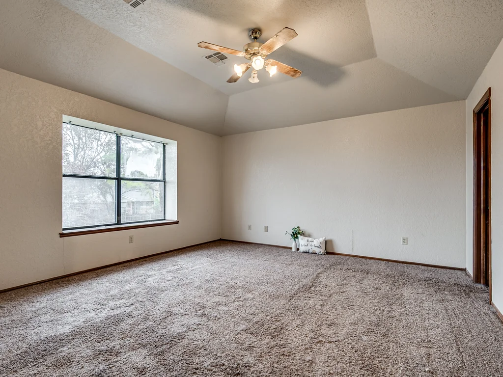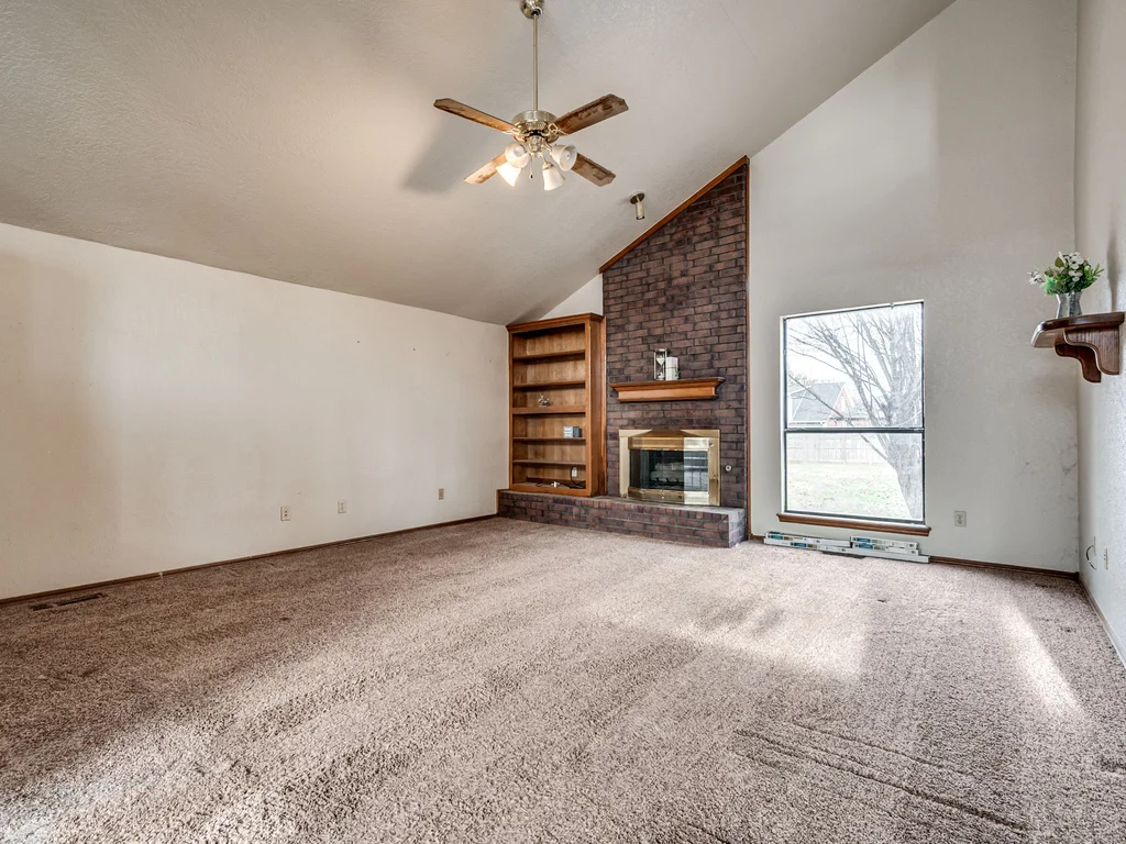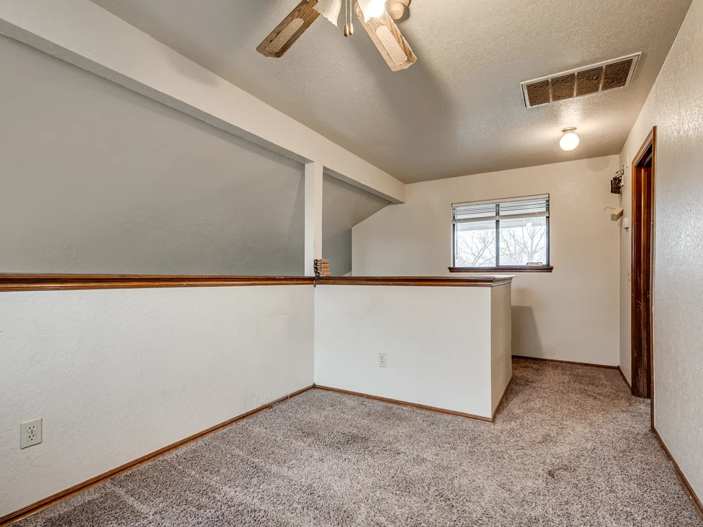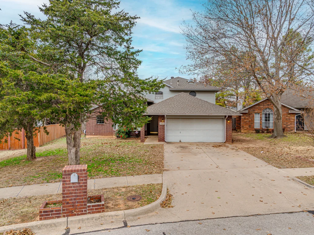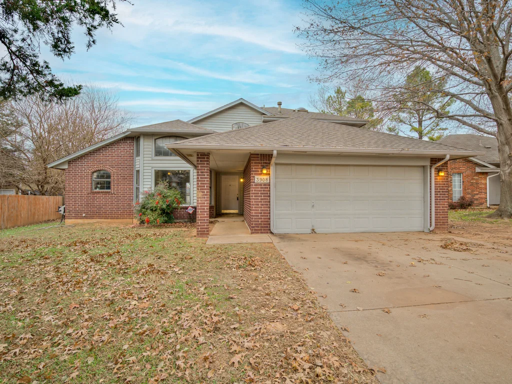 Tucked into a quiet pocket neighborhood on a dead-end street, just minutes from the University of Oklahoma, this hidden jewel offers space, privacy, and opportunity in a central Norman location with Eagle Cliff Park nearby. This 1.5-story home features an expansive backyard that offers space, privacy, and possibility. Upstairs, the home opens into a private retreat with a generous separate sitting area that could easily be used as an office or flex space, along with a primary bedroom featuring balcony access overlooking the backyard. The primary suite includes dual vanities, two separate closets, an oversized garden tub, and a separate shower, giving everyone their own space without stepping on each other’s toes. Downstairs offers a functional flow with two additional bedrooms, a laundry room, dining area, and an open living area with fireplace and built-in shelving. The efficiently designed kitchen provides smart use of space and everyday practicality. Previously used as a rental, this home is being sold AS IS and offers flexibility and potential. With a little TLC, it could be a welcoming place to call home or a smart investment in a strong rental location close to OU. Buyer to verify all information.
