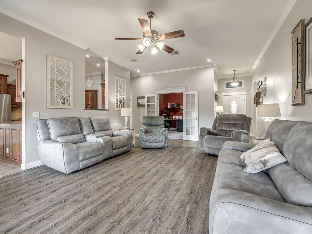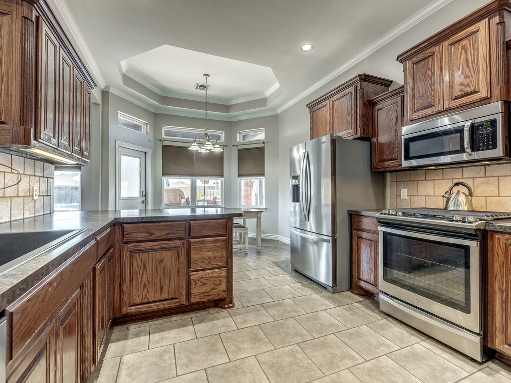 Step into a warm, inviting layout perfect for everyday living and effortless entertaining. The cozy dining area offers a beautiful view of the backyard oasis, making mealtime feel like a retreat. A dedicated study with elegant double doors provides the perfect work-from-home setup, quiet reading space, or flexible bonus room to suit your lifestyle. The kitchen features a gas range, plenty of storage, and a layout designed to make cooking and gathering a breeze.
