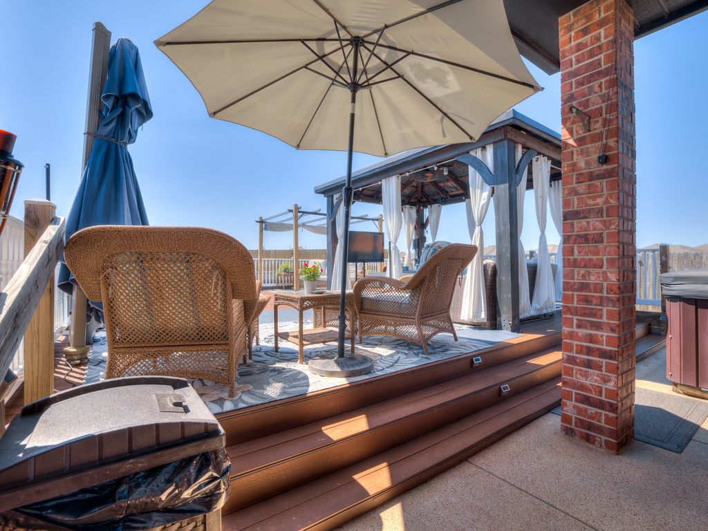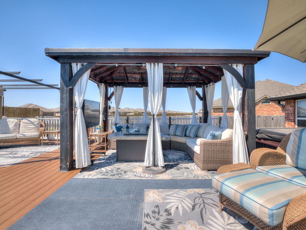 The backyard is a retreat all its own—featuring an upper and lower deck, a 27-foot sunken above-ground pool, and a charming gazebo ready for your morning coffee or evening unwind. A 12x20 outbuilding offers generous space for storage, hobbies, or even a workshop. There’s also a 7x10 storm shelter thoughtfully positioned behind an extended patio, with a separate area perfect for pets or kennels.