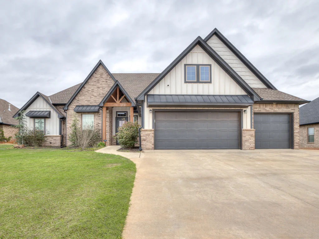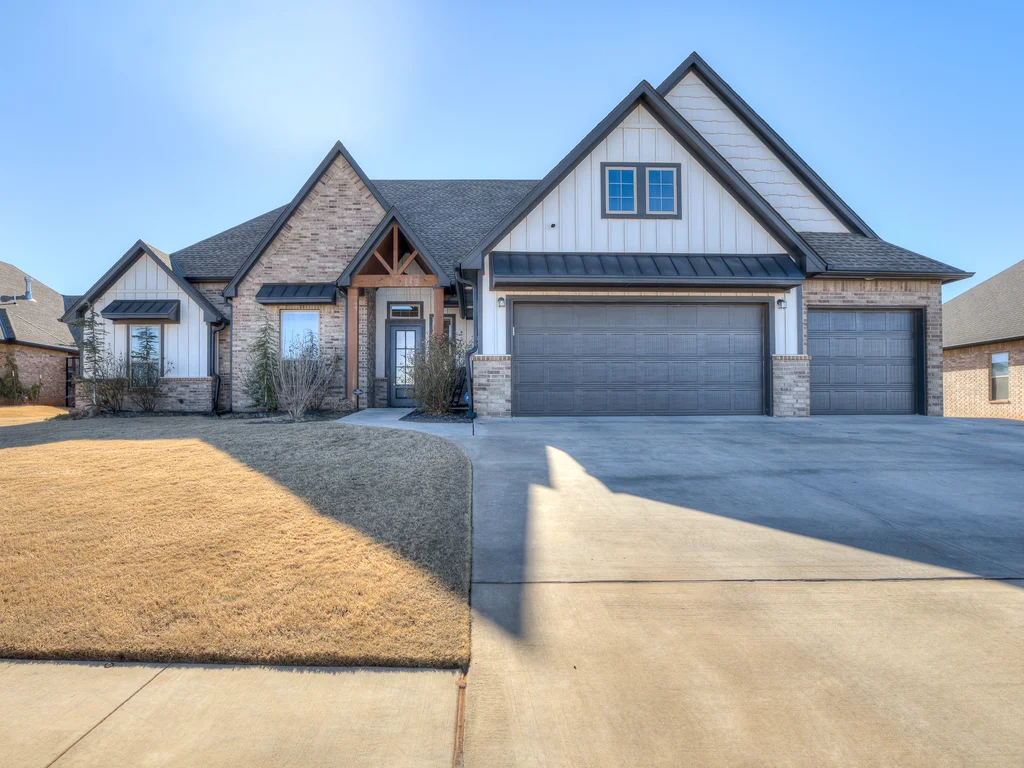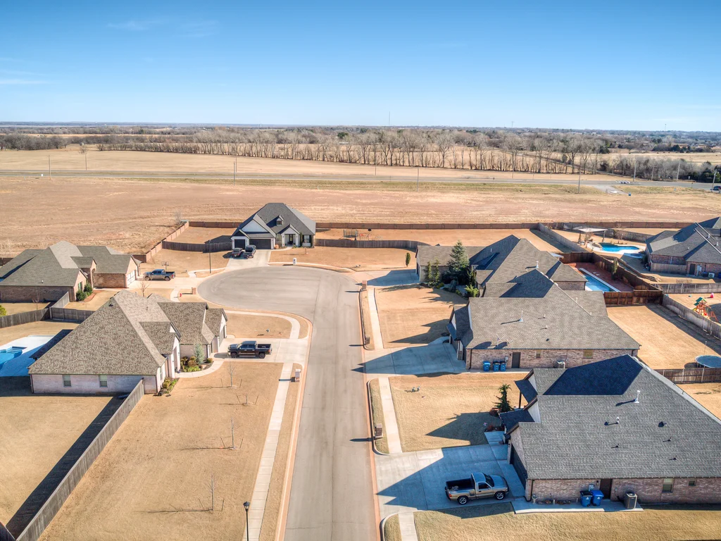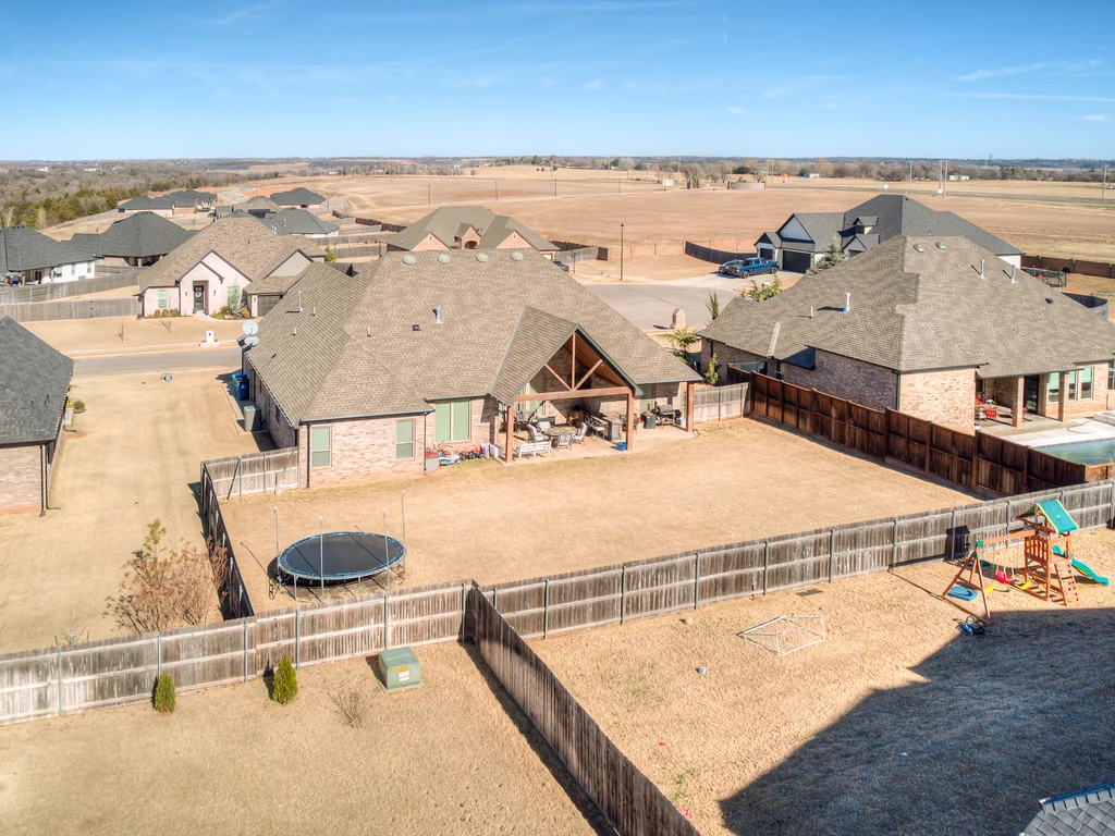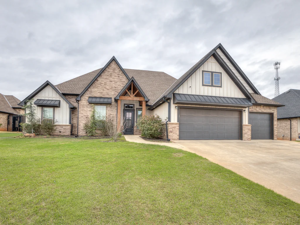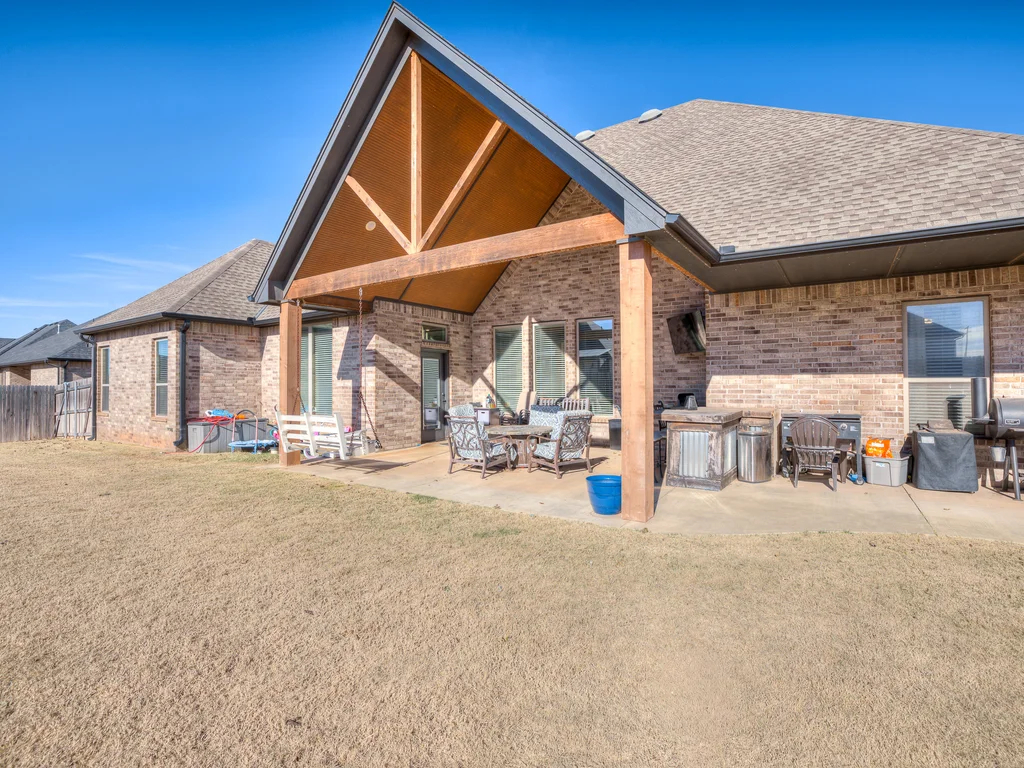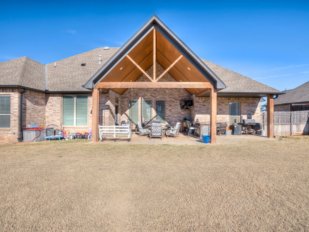 Beautifully situated in Montford of Tuttle, 4844 Constitution Lane will check all of your boxes, from curb appeal to the idyllic floor plan to the spacious backyard! 3 bedrooms + a dedicated study great for the work from home schedule! Study can also be used as an additional bedroom, playroom or whatever you choose. Perks & amenities: front & backyard sprinkler system, security alarm, security cameras, video doorbell, and an above ground storm shelter. The stunning engineered wood flooring, accompanied by high ceilings and natural light gives the main living areas a neutral and elegant feel! Let's talk about this kitchen- Zline brand SIX burner, dual convection oven for the chef in your life! Walk in pantry, floor to ceiling cabinetry with upper and lower LED lighting, large island with plenty of workspace and seating. Master ensuite offers dual sinks, soaker tub and a walk-in shower! The master closet showcases tons of space, built in shelving and conveniently attaches to the generously sized laundry room! Near the laundry you will find a powder bath and a mudroom great for dropping shoes, work bags and backpacks. Secondary bedrooms are located on the opposite side of the primary bedroom- with a jack and jill full bath. Floorplan and approximate* dimensions in the photos! Tv mounts, garage refrigerator and custom Christmas lights to stay with the home. Just 10 minutes away from the town of Mustang, shopping, restaurants, highway and turnpike!