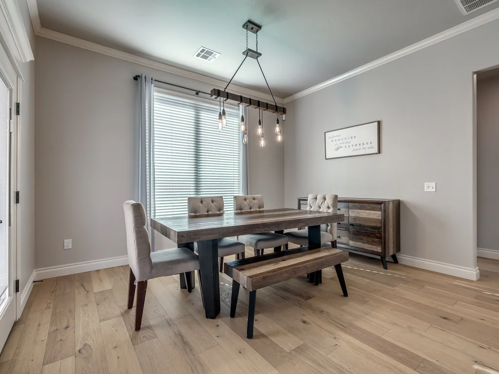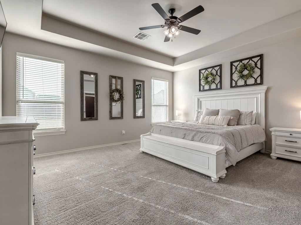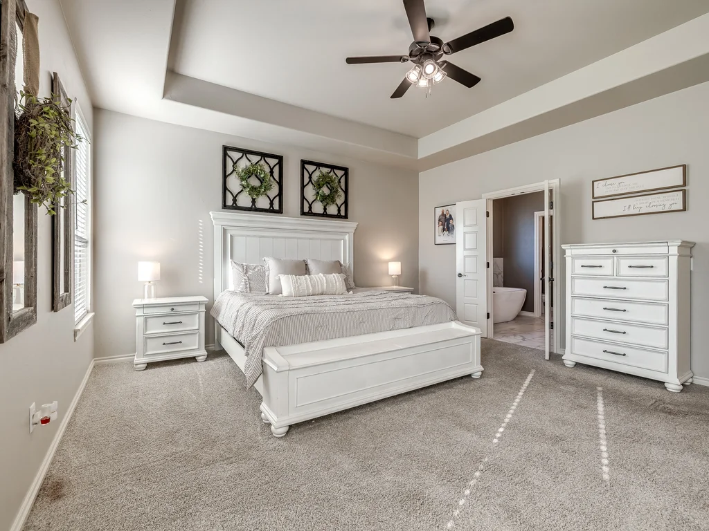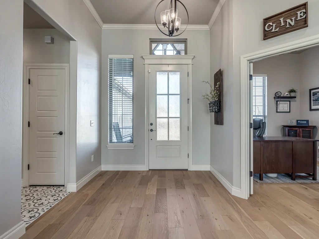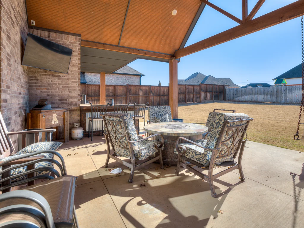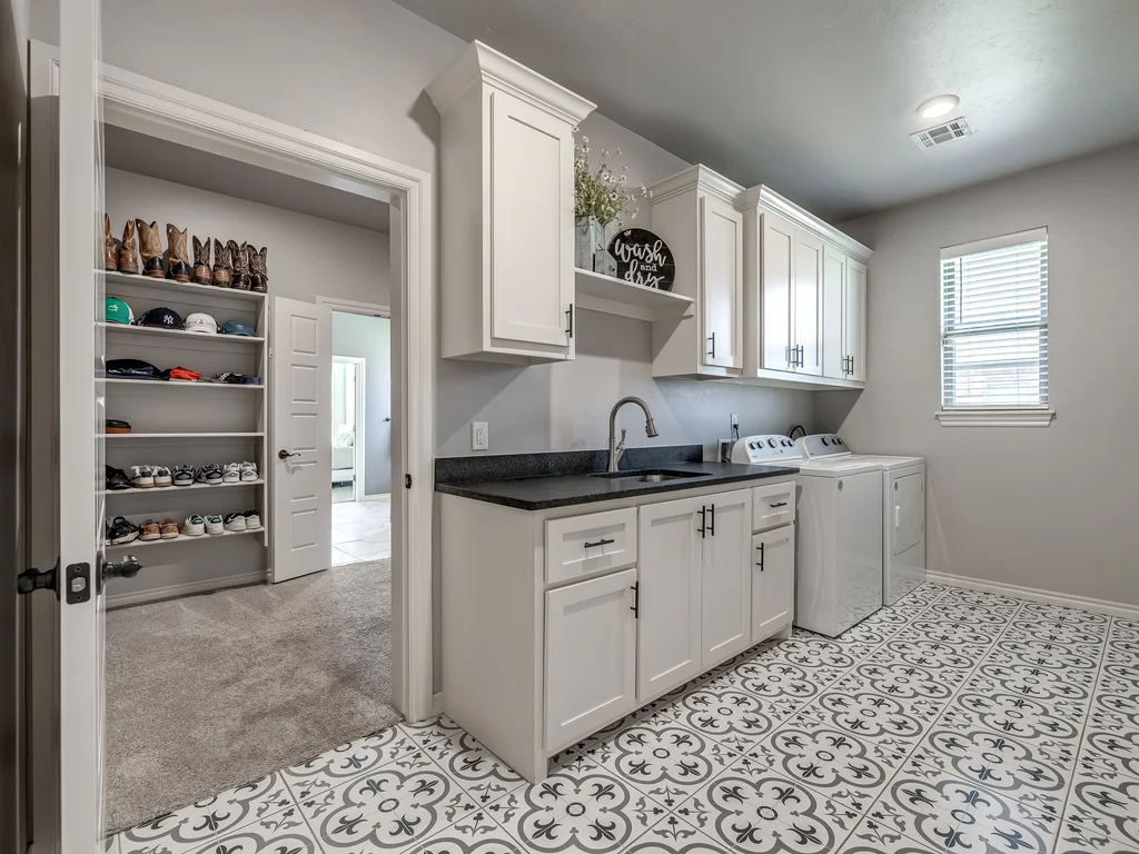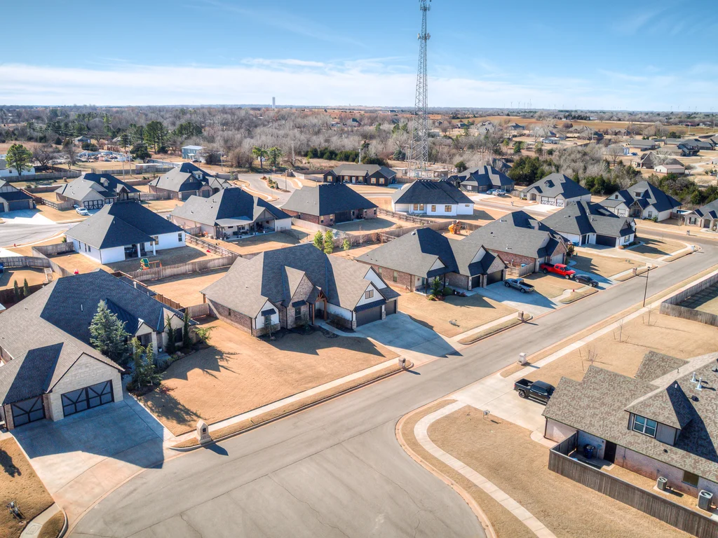 Beautifully situated in Montford of Tuttle, 4844 Constitution Lane will check all of your boxes, from curb appeal to the idyllic floor plan to the spacious backyard! 3 bedrooms + a dedicated study great for the work from home schedule! Study can also be used as an additional bedroom, playroom or whatever you choose. Perks & amenities: front & backyard sprinkler system, security alarm, security cameras, video doorbell, and an above ground storm shelter. The stunning engineered wood flooring, accompanied by high ceilings and natural light gives the main living areas a neutral and elegant feel! Let's talk about this kitchen- Zline brand SIX burner, dual convection oven for the chef in your life! Walk in pantry, floor to ceiling cabinetry with upper and lower LED lighting, large island with plenty of workspace and seating. Master ensuite offers dual sinks, soaker tub and a walk-in shower! The master closet showcases tons of space, built in shelving and conveniently attaches to the generously sized laundry room! Near the laundry you will find a powder bath and a mudroom great for dropping shoes, work bags and backpacks. Secondary bedrooms are located on the opposite side of the primary bedroom- with a jack and jill full bath. Floorplan and approximate* dimensions in the photos! Tv mounts, garage refrigerator and custom Christmas lights to stay with the home. Just 10 minutes away from the town of Mustang, shopping, restaurants, highway and turnpike!