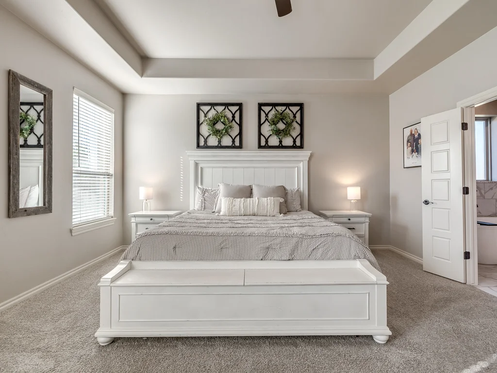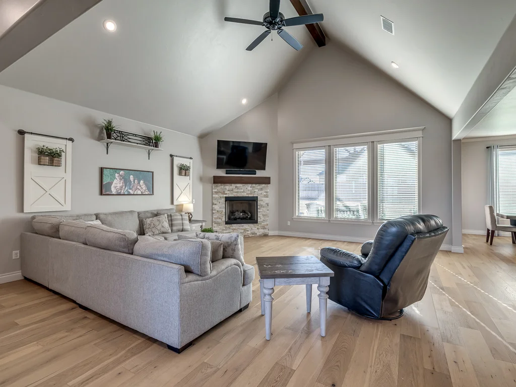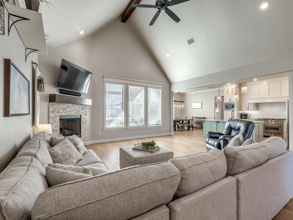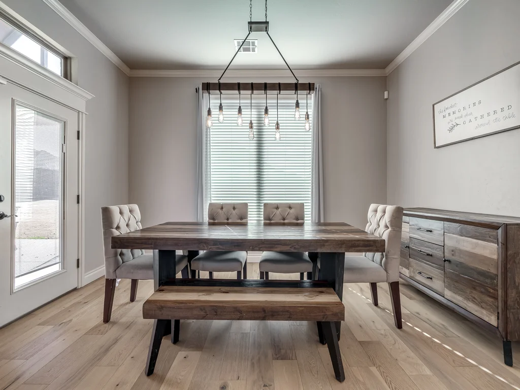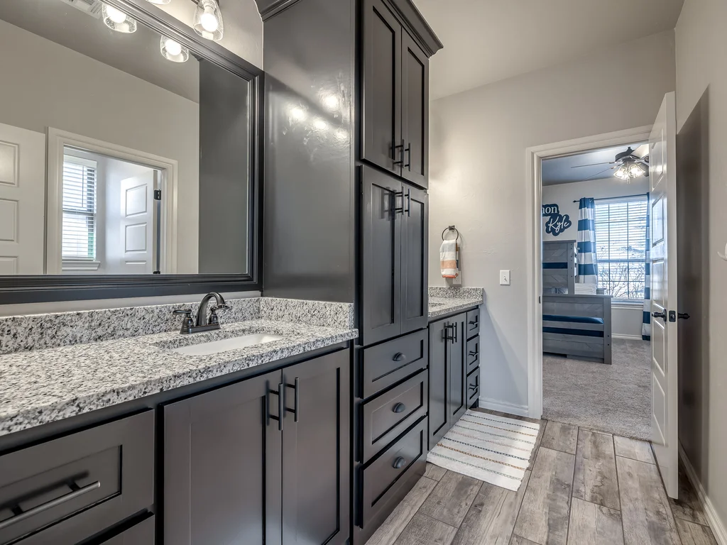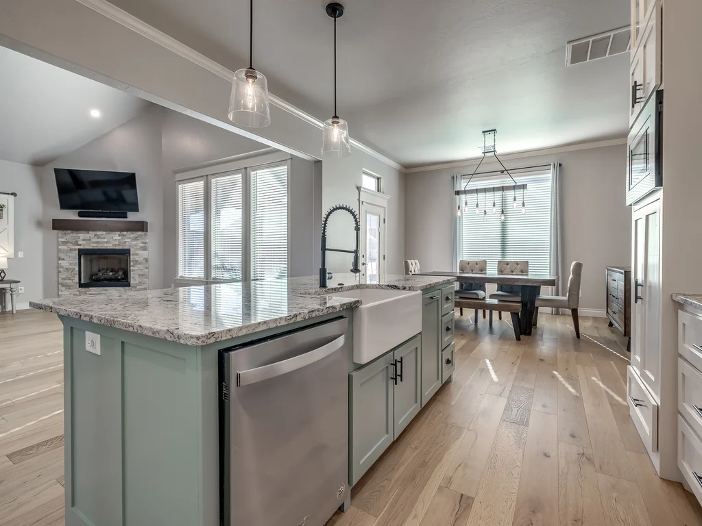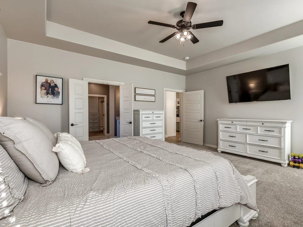 Beautifully situated in Montford of Tuttle, 4844 Constitution Lane will check all of your boxes, from curb appeal to the idyllic floor plan to the spacious backyard! 3 bedrooms + a dedicated study great for the work from home schedule! Study can also be used as an additional bedroom, playroom or whatever you choose. Perks & amenities: front & backyard sprinkler system, security alarm, security cameras, video doorbell, and an above ground storm shelter. The stunning engineered wood flooring, accompanied by high ceilings and natural light gives the main living areas a neutral and elegant feel! Let's talk about this kitchen- Zline brand SIX burner, dual convection oven for the chef in your life! Walk in pantry, floor to ceiling cabinetry with upper and lower LED lighting, large island with plenty of workspace and seating. Master ensuite offers dual sinks, soaker tub and a walk-in shower! The master closet showcases tons of space, built in shelving and conveniently attaches to the generously sized laundry room! Near the laundry you will find a powder bath and a mudroom great for dropping shoes, work bags and backpacks. Secondary bedrooms are located on the opposite side of the primary bedroom- with a jack and jill full bath. Floorplan and approximate* dimensions in the photos! Tv mounts, garage refrigerator and custom Christmas lights to stay with the home. Just 10 minutes away from the town of Mustang, shopping, restaurants, highway and turnpike!