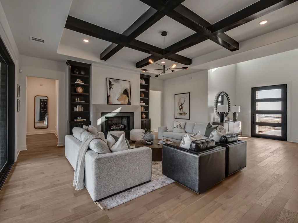 Elegant New Construction in Somerset Ridge Step inside this thoughtfully designed home offering a seamless blend of style and function. The open-concept living area features engineered wood flooring, a striking fireplace accent, and built-in cabinetry. The kitchen showcases stained cabinetry, a large island, premium fixtures, and a walk-in pantry with additional storage. The dining area, private study, and mud bench with utility space are designed for everyday convenience. The floor plan includes a spacious primary suite with a spa-inspired bath, plus three additional bedrooms each with a private bath. Designer-selected finishes—ranging from Alabaster and Llama Wool paint tones to bronze and black hardware—create a cohesive, modern feel throughout. Outdoor spaces are ready for relaxing or entertaining, complemented by the home’s curb appeal with contrasting siding, brick, and stone details. Located in Somerset Ridge with access to local amenities, this home offers quality craftsmanship, thoughtful details, and a floor plan designed to meet a variety of lifestyle needs.